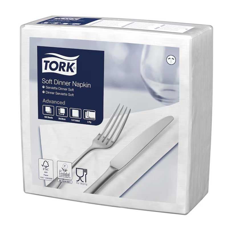 Serviettes de grande taille 40 x 39 cm. Conception 3 plis de grande qualité. Le lot de 12 x 100 serviettes.